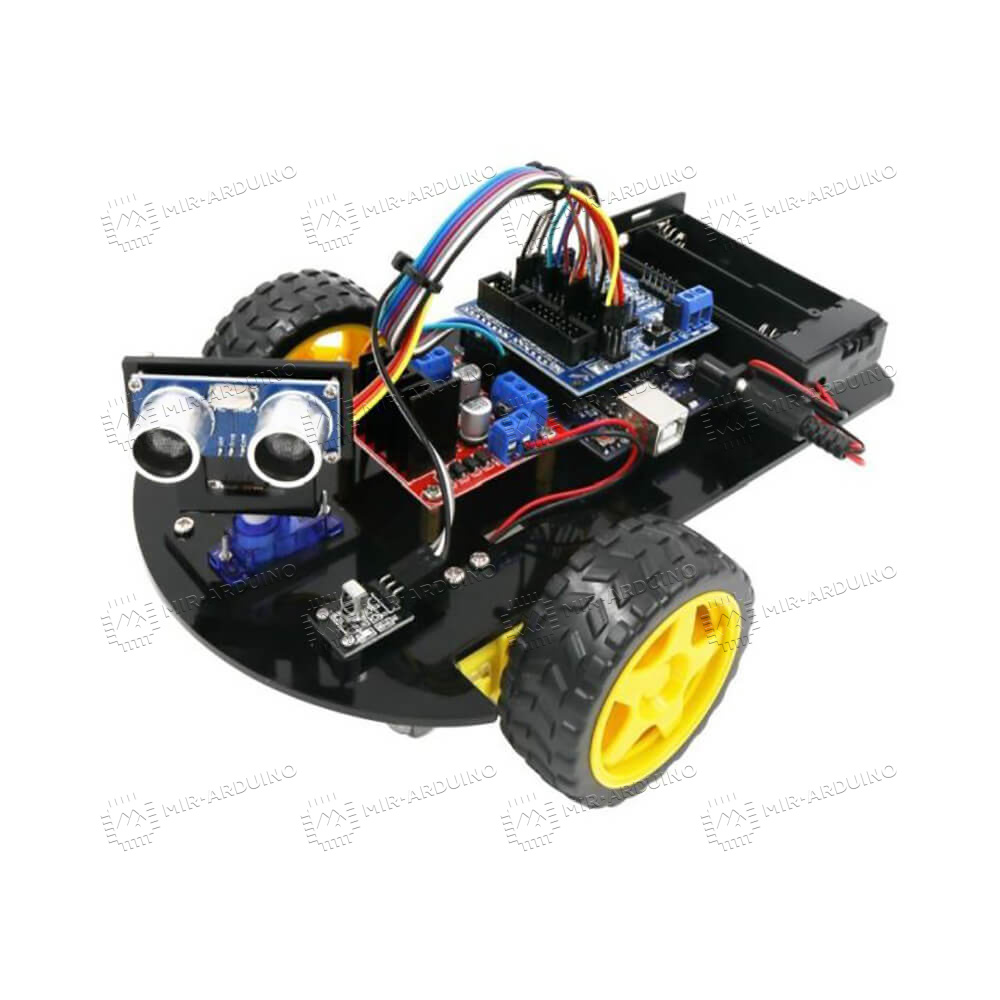 Набор для моделирования Ардуино (Arduino) 2WD Car Robot Lafvin представляет собой конструктор, из которого можно собрать умный робот-автомобиль. Машиной можно управлять с помощью пульта, который входит в комплект. Также в наборе имеются акриловая основа автомобиля, все необходимые датчики, плата расширения, сервопривод, драйверы, провода, колеса и крепежи, диск с инструкцией по сборке. Умный конструктор будет полезен для начинающих программистов, поможет при обучении робототехнике. Подойдет как новичкам, познающим азы электроники, так и опытным инженерам.